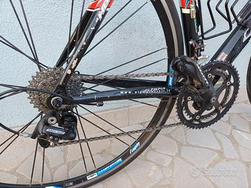 Bici da corsa Olympia Flash in ottime condizioni, ideale per chi vuole iniziare il ciclismo su strada. Caratteristiche principali: Telaio: Alluminio leggero con geometrie Olympia (molto stabile e confortevole). Gruppo: Campagnolo Mirage 9 velocità (cambio preciso e robusto). Stato meccanico: La bici è stata controllata, il cambio è fluido e i freni sono pronti all’uso. Condizioni: Telaio ben tenuto, normali segni di utilizzo dovuti all’età ma nessuna botta o crepa. Pacco pignoni appena cambiato.