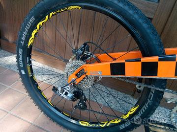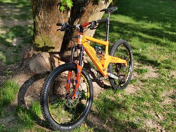 Salve, vendo per fare spazio e per inutilizzo dato che mi è diventata piccola. ruote mavic da 26 in alluminio doppia corona aggiunta dal precedente proprietario sospensione marzocchi anteriori e mono Fox cambio Shimano deore XT per corona cambio sram x9 posteriore appena cambiate le camere d'aria e manopole appena fatto cambio olio freni no offerte ridicole bici iconica che ha fatto la storia e che ho preso, anche se non faccio discesa, principalmente perché mi è sempre piaciuta come stile/linee Ottimo telaio anche se avete idea di metterci un motore elettrico