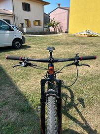 Tubeless con lattice fresco (100 ml), corona 32T (cambiata), cavi interni predisposti per reggisella telescopico. Manopole Meroca + originali in omaggio, sella San Marco + quella di serie (graffiata). Pedali Rockrider nuovi, 2 portaborracce in alluminio inclusi!