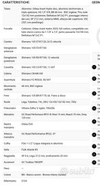 Vendo, per passaggio ad altra bici, bici da corsa Orbea Avant H30 taglia 55. Acquistata a marzo 2025 (registrata sul sito ufficiale, per cui verificabile), usata per una sola estate. Copertoni appena cambiati, condizioni pressoché ottime. Telaio in alluminio e forcella in carbonio. Trasmissione Shimano 105 a 2x12 velocità. Freni a disco idraulici Shimano 105 R7170. Caratteristiche tecniche come in foto. Presenta alcuni segni da utilizzo (visibili in foto).