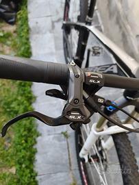 bicicletta front orbea escursioni forcelle 120 mm rockshox Gold cerchi rinforzati sgancio rapido dietro davanti Corona davanti tre velocità Corona dietro 10 velocità dietro pedali sgancio rapido copertura telaio in carbonio freni Shimano SLX performanti manutenzione zero già fatta tutto tranne il carboceramici copertura frena 120 mm il disco rockshox Gold regolabili pressione 50 PSA all'interno gomme al 80% tutte e due telaio in alluminio leggero questa bici è perfetta per chi vuole iniziare o andare con suo figlio a Giri invece anche per fare thrill molto leggeri e per fare un po' di salti cambia il manubrio tubeless ready se non erro il volante davanti da 710 mm di lunghezza sellino regolabile ma la tensione perfetta alla bicicletta è già stata tutta revisionata dal meccanico il freno davanti fa solo un po' di fischio per il resto è tutto a posto ovviamente pedivelle un po' rovinate la taglia m però è un pochino più grande di una m è presente qualche segno di misura normalmente il prezzo un po' trattabile però non tanto ritirò a mano Firenze viale Verga