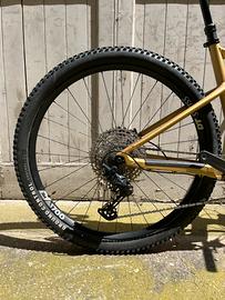 Bici con meno di 200km di utilizzo, condizioni pari al nuovo. Telaio alluminio in taglia L ( Per altezze tra 170/185 cm). Forcella Marzocchi Bomber 140mm. Gruppo cambio Shimano SLX 12 velocità. Corona ant. Shimano 32T. Cassetta Shimano 10-51. Freni MAGURA TM ant. 4 pistoni post 2 pistoni. Ruote DT SWISS XM 1700 29". Pneumatico ant. Maxxis Rekon 29x2,40. Pneumatico post. Specialized Ground Control 29x2,35. Sella Prologo NDR. Nel prezzo è inclusa una coppia di cerchi Oquo di serie e una coppia di pneumatici Maxxis Rekon/ Forekaster 29"x2,60 usati 2 volte.