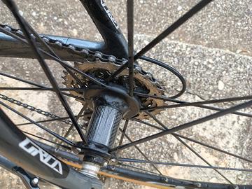 corone anteriori sostituite con le Absolute black 52-36 ovali molto più leggeri, sella sostituita con una specialized power corta antiprostata, cerchi sostituiti con RACING FULCRUM ZERO mozzo carbon e cuscinetti in ceramica.