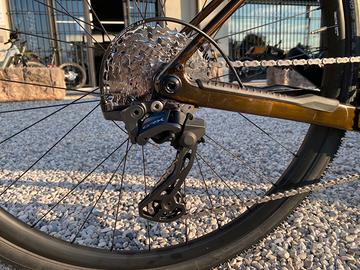 Telaio in carbonio monoscocca compatibile con misuratore di potenza, reggisella carbonio, LOCKR portaoggetti, cavi integrati. Cambio Shimano GRX RX820 2x12, freni a disco idraulici Shimano RX820.