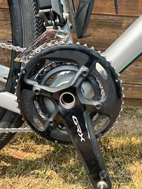 Trasmissione GRX di2 (elettronico) 11 velocità, corone 48-31 e cassetta 11-34, freni idraulici GRX, pastiglie nuove con alette raffreddanti.
