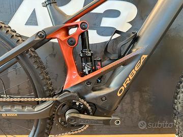 Orbea Wild M20 Telaio: Orbea Wild OMR 2025, 29" wheels, Concentric Boost 12x148 Ammortizzatore: Fox Float X Performance Trunnion 2-Pos Evol LV custom tune 205x65mm Forcella: RockShox ZEB Base-A2 DebonAir+ 170 E-MTB specific 15X110 Boost Batteria: Bosch Powertube 750Wh Horizontal BBP3770 (Optional: Range Extender Bosch Powermore 250Wh +499€) Motore: Nuovissimo Bosch Performance Line CX BDU3840 Gen. 5 Display: Bosch System Controller BRC3100 (Optional Bosch Display KIOX 300 +149€) Remote: Bosch Mini Remote BRC3300 Caricatore: Bosch Charger 4A (230V) BPC3400 Guarnitura: e*thirteen e*spec Direct Mount 34T Boost Pedivella: e*thirteen Plus Pignoni: Shimano CS-M7100 10-51t 12-Speed Cambio: Shimano SLX M7100 SGS Shadow Plus Catena: Shimano M6100 Tendicatena: e*thirteen Plus Bosch CX Gen4 CL 55 32-36t Manubrio: OC Mountain Control MC30, Rise20, Width 800 Attacco: OC Mountain Control MC20, 0º Computer Mount: OC Computer Mount CM-05, Garmin/Sigma Freni: Shimano Shimano M6120 Hydraulic Disc Dischi Freno: Galfer Wave Rotors 203mm front / 203mm rear Ruote: Race Face AR 30c Tubeless Ready Pneumatico Ant: Maxxis Assegai 2.50" 60TPI 3CG/EXO+/TR MaxxGrip Pneumatico Post: Maxxis Minion 2.40" 120 TPI 3CT/DD/TR MaxxTerra Reggisella telescopico: OC Mountain Control MC22, 31.6mm, Dropper Remoto Reggisella: Shimano SL-MT500 I-Spec EV Sella: Fizik Aidon 208x145mm manganese rail Possibilità di finanziamento in 10 o 20 rate a tasso zero con Findomestic Possibilità di spedizione, prezzo scontato è da considerarsi senza ritiro usato. Telefono o Whatsapp