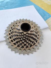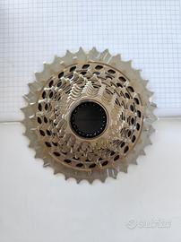 Pacco pignone SRAM Red 12v, 10-33T l'ultimo rapporto il 33 non funziona bene poiché la catena salta, dovuto all'usura. Il resto è okay.