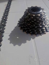 Pacco pignoni come nuovo, dentatura perfetta come da foto. Shimano Ultegra 12-25 11V. In omaggio anche la sua catena originale