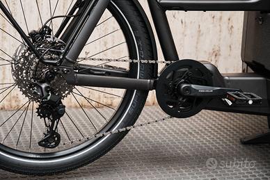 Grazie allo sterzo a tirante, al baricentro basso e al raggio di sterzata ridotto, è estremamente maneggevole in città. Il motore Bosch Cargo Line (100 Nm, assistenza fino al 400%) e la batteria da 750 Wh garantiscono potenza e autonomia per ogni percorso. Il Bosch Smart System con display Kiox 300 mantiene tutto sotto controllo.