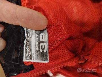 Vendesi pantaloni tecnici da motocross/downhill della Troy Lee Designs (TLD), uno dei marchi leader nel settore per protezione e stile. Colore rosso vibrante con loghi in rilievo originali. tratt..