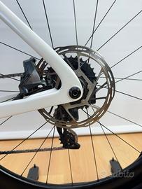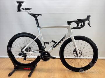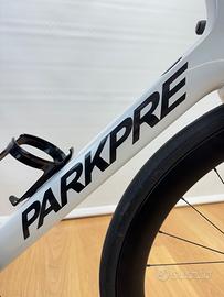 Parkpre K99 Disc del 2021 circa, telaio creato in Toscana full-carbon di ultima generazione completamente integrato con geometrie moderne per avere il massimo tra rigidità e comfort, montato con gruppo Sram Force AXS a 12 velocità elettronico e misuratore di potenza Quarq, ruote Event Astral Carbon con profilo da 50mm, manubrio Deda Alanera RS full-carbon misura 130×44, telaio di misura 58 cm orizzontale adatta per altezze da 185 a 195 cm circa. La bici è sempre stata usata per passeggiate domenicali ed adesso permutata per passaggio a nuovo modello, si presenta in ottime condizioni e sarà spedita o consegnata con caricabatterie e completamente revisionata.
