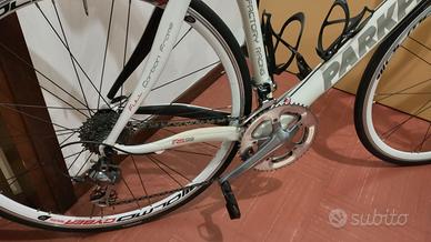 Parkpre RS99 vendo per che ho comprato nuova bici componenti Ultegra 10S freni Shimano 600 movimento centrale Dura Ace manubrio FSA carbonio gome Continental 5000 taglia 56" poco regolabile con tubo unico di telaio questo telaio prezzo di uscita costava. 32000€.
