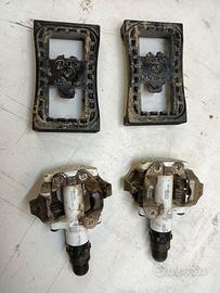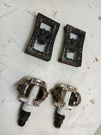 PEDALI AUTOMATICI SGANCIO RAPIDO. MARCA : SHIMANO COMPRESI DI PIEDINO IN PLASTICA PER EVENTUALE PEDALATA CON SCARPE NORMALI.