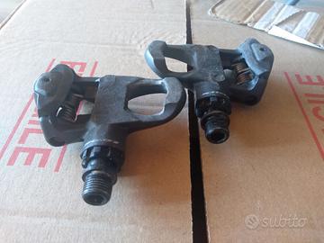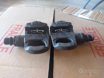 Buone condizioni, rotazione perfetta, nessun gioco dei perni, molle di sgancio regolabili, sempre manutenute, filettatura in pedivella regolare.