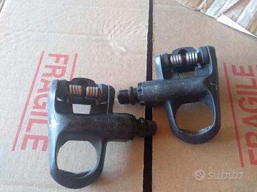 Buone condizioni, rotazione perfetta, nessun gioco dei perni, molle di sgancio regolabili, sempre manutenute, filettatura in pedivella regolare.