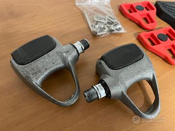 Coppia pedali Look Campagnolo attacco Delta. Scorrevoli e silenziosi. Completi di tacchette rosse nuove e cover