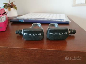Vendo pedali look vintage per tacchette delta. Marca Exus. I pedali funzionano e sono ben molleggiati e pronti all'uso ma le viti di regolazione della durezza della molla girano a vuoto.