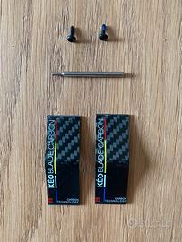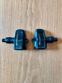 Pedali per bici da corsa Look Keo Blade Carbon TI di colore nero venduti con lama di tensione di aggancio/sgancio sia da 12 Nm (già montata sui pedali) che da 16 Nm (da poter sostituire), dotati di viti e utensile per l'estrazione e sostituzione della lama. Completano il tutto due paia di tacchette Look Keo ( un paio usate e l'altro nuove) di colore grigio (libertà angolare 4,5°) con relative viti e asole. Nuovi, tolti da bici nuova per utilizzarne un paio con misuratore di potenza, vendo causa inutilizzo.
