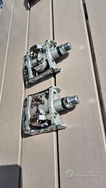 Caratteristiche principali dei pedali: Lato A (Automatico): Presenta un meccanismo di aggancio SPD (Shimano Pedaling Dynamics). Si usa con scarpe specifiche dotate di tacchette metalliche a due fori. Lato B (Piatto): Presenta una gabbia in alluminio con dentellatura per offrire grip anche con scarpe normali (sneakers, scarponcini). Materiale: Corpo in alluminio e gabbia esterna in acciaio o alluminio lucido.