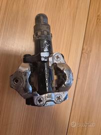Vendo coppia di pedali per mountain bike Shimano modello PD-M520, sistema a sgancio rapido SPD. I pedali sono usati e presentano i classici segni estetici dovuti all'utilizzo (visibili in foto), ma sono perfettamente funzionanti. I cuscinetti girano bene e le molle di ritenzione sono solide e regolabili nella tensione.