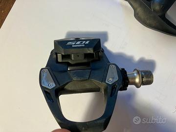 Vendo Pedali Shimano 105 SPD-SL PD-R7000, seminuovi, usati da giugno a dicembre 2025 per circa 3000 km, con pochissimi segni di utilizzo. Pedali in composito di carbonio, con perno in acciaio inox e piattaforma larga per favorire la spinta sul pedale.