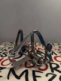 Pedali in acciaio con gabbietta a fibbie in pelle blu. Perfetti per bici vintage/fixed. Ottimo stato come da foto.