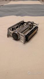 Vendo coppia di pedali a sgancio rapido LOOK modello PP166, un vero classico del ciclismo su strada degli anni '90. Prodotti in Francia, questi pedali erano il top di gamma per affidabilità e design. Dettagli: Colore: Bianco originale. Regolazioni: Tensione della molla regolabile micrometricamente. Compatibilità: Tacchette tipo LOOK Delta (standard facilissimo da reperire). Condizioni: Usati con normali segni estetici dovuti all'utilizzo (come visibile in foto), meccanica funzionante. Perfetti per completare un restauro vintage o per una bici da corsa classica. Prezzo: €20 Spedizione disponibile o ritiro a mano.