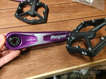 Vendo pedivelle Hope lunghezza 165 mm per i comuni motori bosh, Brose e Yamaha. Vendo complete di pedali crankbrothers stamp 1 in quanto uno dei due pedali ha l'esagono smangiato e non è possibile il disassemblaggio. I pedali erano appena stati montati e di conseguenza sono in ottimo stato.
