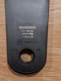 Pedivelle Shimano Ultegra per guarnitura a doppia corona cambio a 12 velocità. Lunghezza 172,5 mm. Modello FC-R8100. In ottime condizioni.