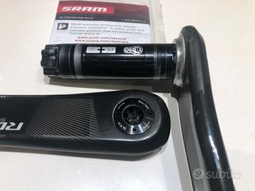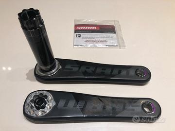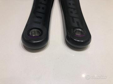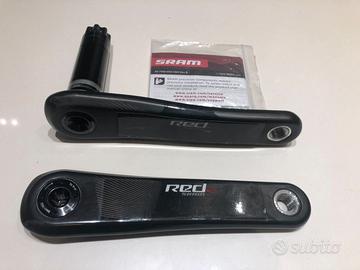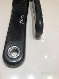 Vendo pedivelle SRAM RED in carbonio, versione per movimento centrale BB30 / PF30. Si tratta del modello top di gamma, celebre per la sua incredibile leggerezza e rigidità. Le pedivelle sono in ottime condizioni estetiche e funzionali, come visibile in foto. Perfette per chi vuole alleggerire la propria bici da corsa con un componente professionale. Caratteristiche Tecniche e Dati: Tecnologia Exogram™: Le pedivelle utilizzano una struttura in carbonio completamente cava fino allo spider (la stella). Questa sezione trasversale massimizza il rapporto rigidità/peso, rendendola una delle pedivelle più rigide mai prodotte da SRAM. Materiale: Carbonio ad alto modulo con finitura unidirezionale. Lunghezza: 170 mm. Standard Perno: BB30 / PF30 (perno da 30mm di diametro). Compatibilità Telaio: Scatole movimento centrale BB30 o PressFit30 (68mm strada). Peso Pedivelle 170mm: Circa 400g , tra le più leggere sul mercato. Vite Nascosta (Hidden Bolt): Il design sfrutta le proprietà della fibra di carbonio per nascondere i bulloni e migliorare l'aerodinamica e l'estetica. Stato del prodotto: Include ghiera di precarico per cuscinetti (visibile in foto). Manuale originale incluso. Perno integrato in alluminio da 30mm integrato nella pedivella sinistra.