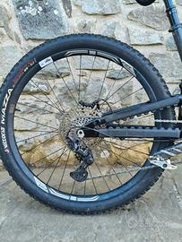 Bici perfetta, in discesa va da paura e si pedala molto bene. è la versione team ma monta alcuni pezzi della top di gamma, prezzo nuova 8300. Bici Pedroni 29" taglia m. perfetta per qualsiasi bikepark e gara. Monta: Freni Formula Cura 4 con leva RGTEC (a disposizione anche gli originali). Forcella Ext Era V2 170mm Ammortizzatore Ext Storia Lok V3 Manubrio Switch Whip con attacco manubrio Switch Toboga Ruote FIR WRANGLER BOOST 29" TUBELESS READY Telescopico SWITCH SWR Cassetta INGRID 12V, 10-52 Deragliatore Shimano XT (l'originale era INGRID RD1-M 12v ma non era efficace) Peso bici circa 15,7 kg. Queste sono le parti più importanti. È una bici praticamente top di gamma e nei campi gara italiani e mondiali la si vede sempre di più. Ha 2 anni ma è stata usata poco a causa di un infortunio.