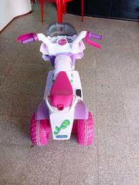 Mini Princess è il veicolo elettrico a tre ruote realizzato per le bimbe dal primo anno d’età. Funziona con batteria da 6 Volt ricaricabile. Mini Princess ha una sola velocità di marcia adatta alla giovane età della conducente (circa 3 Km/h). Il suo ridotto raggio di sterzata permette di muoversi con libertà anche in piccoli spazi come i locali di casa. La batteria da 6V/4,5Ah che si trova nell'alloggiamento sotto la sella è protetta da un ferma batteria di sicurezza a prova di bambino. La batteria è ricaricabile tramite una comune presa domestica, direttamente dal veicolo oppure estraendola