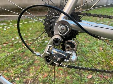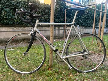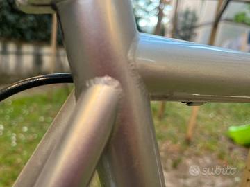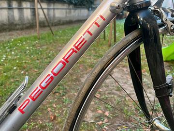 Il telaio è stato costruito e saldato da Dario Pegoretti. Presenta normali segni di usura. La bici è stata usata dal 2000 al 2006. Da allora è ferma. Naturalmente necessita di una revisione prima di essere usata ma non ha nessun danno. Montata Campagnolo Record. Misura 58, io sono alto 1,84.