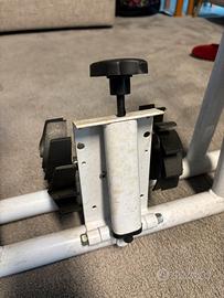 Sostegno bici per allenamento indoor. Presenta solo segni di sporcizia dovuti all’ambiente in cui è stato ritirato (garage)