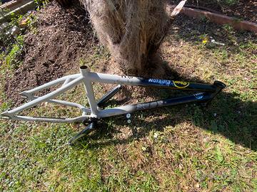 Vendo telaio full cromoly sunday (miglior materiale per i telai da freestyle), forcella sunday con tubo di sterzo in cromoly, pedivelle in cromoly già montate sul telaio e in fine corona sunday da 25 denti. Vendo tutto al prezzo in vista Il mio numero 331 152 36 12