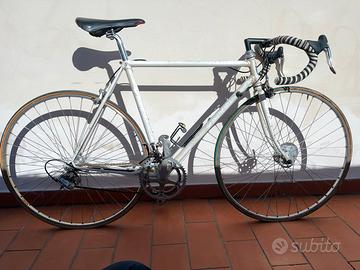 Vendo rarissimo esemplare di Pinarello Team Banesto degli anni '90, pezzo raro di valore storico. Potrebbe essere un telaio costruito artigianalmente nel reparto corse Pinarello per un celebre corridore professionista della squadra Telaio con caratteristiche del Reparto Corse Team Banesto. Presenta dettagli costruttivi (punzonatura singola e asole tecniche) che richiamano la produzione artigianale tipica dei telai realizzati per i campioni della squadra negli anni '90 Misura telaio 52/53 Cambio e freni Campagnolo Tubi Oria Misura telaio 52/53 Componenti Campagnolo