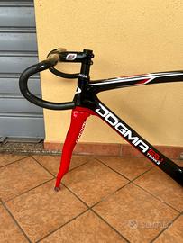 Pinarello replica 65.1 freni RIM con manubrio integrato originale most.Altezza cf 52.5 lunghezza 53.5 piantone sterzo 12.5 manubrio integrato mosto cc42 cf44 lunghezza 120 movimento centrale x shimano Caratteristiche principali: Telaio replica Dogma 65.1 (freni RIM) Movimento centrale compatibile Shimano Manubrio integrato originale MOST Bici adatta a ciclisti di statura media (circa 165-175 cm, indicativo). V Condizioni: Usata ma ben tenuta Pronta all'uso Nessun lavoro da fare