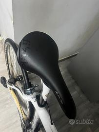 Taglia 50,cambio elettronico ultegra di2 10 Velocità(50/34 davanti,12/30 dietro),completamente funzionante,soliti segni di usura del tempo ma nessun problema da segnalare.Sella Fizik,copertoni nuovi,fasce sul manubrio cambiate nuove per la vendita,manubrio deda e attacco manubrio fsa,reggisella in carbonio Dogma originale,ruote shimano.Inclusa borsa con manuale Pinarello,caricabatterie,una batteria extra in perfetto stato e due borracce q36.5 mai usate.Vendo per passaggio a modello nuovo