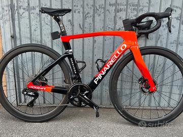Kit telaio new Dogma F 2025 con manubrio integrato, gruppo Shimano Durace DI12, cassetta Z34e catena Durace, ruote Speed 42 Ceramic, copertoni Pirelli PZero 28 mm, doppio portaborraccia Pinarello carbon, retro luce Pinarello con attacco carbon per Dogma F