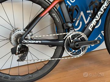 Pinarello Dogma F, modello 2026, acquistata nel 2025. Taglia 54 (55 orizzontale). Colorazione speciale Luxter Red Gold. Gruppo SRAM RED AXS 12v con Power Meter (48/35 - 10/33), pedivelle 172,5. Ruote ZIPP FIRECREST 353 NSW. Manubrio MOST Carbon.