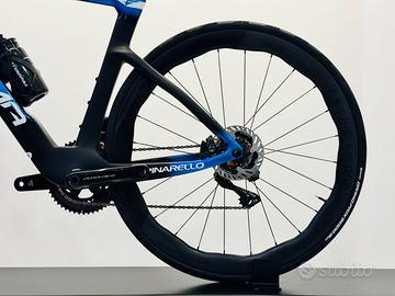 Bici nuova in pronta consegna in misura 51.5 o 54 nel colore Luxter Blue Shiny Specifiche tecniche: -Colorazione: Luxter Blue Shiny -Misura: 51.5, 54 -Telaio: TorayCa M40X, TiCR™ passaggio cavi integrato, movimento centrale ITA -Forcella: Nuova forcella eTiCR™ Onda con ForkFlap, sterzo superiore ed inferiore da 1.5’ -Deragliatore posteriore: Shimano Dura-Ace R9250 Di2 12v -Deragliatore anteriore: Shimano Dura-Ace R9250 Di2 -Guarnitura: Shimano Dura-Ace R9200 -Cassetta pignoni: Shimano Dura-Ace R9200 12v -Comandi: Shimano Dura-Ace R9270 Di2 2x12v -Freni: Shimano Dura-Ace R9270 disco idraulico -Disco Freno: Shimano CL900 160mm anteriore, Shimano CL900 140mm posteriore -Ruote: Princeton Peak 4550 -Pneumatico anteriore: Continental GP5000S tr 700x28 tubeless ready -Pneumatico posteriore: Continental GP5000S tr 700x28 tubeless ready -Reggisella: Pinarello Aero con fissaggio sella in titanio stampato 3D e viteria in titanio -Sella: Most Lynx Ultrafast Superflow L Carbon Large 145mm -Manubrio: Most Talon Ultra Fast full carbon -Extra: Portaborracce Most -Peso in kg (approx): 6.7 -Listino: € 14.900,00 -Prezzo scontato: € 11.920,00 *Salvo errori e/o omissioni