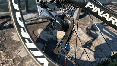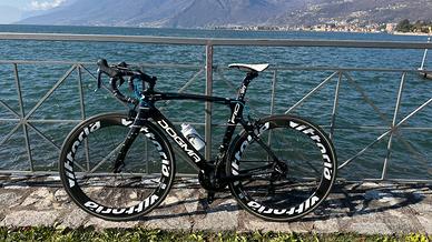 Vendo Pinarella F10 taglia 54 colorazione team sky firmata Froomey , con manubrio e attacco zip, fili e guaine nuovi pattini nuovi serie sterzo nuova nastro manubrio nuovo sella seminuova pulegge cambio nuovo trasmissione 50 - 34 nuova con catena nuova. Lunghezza pedivelle 170 . Tubolari nuovi