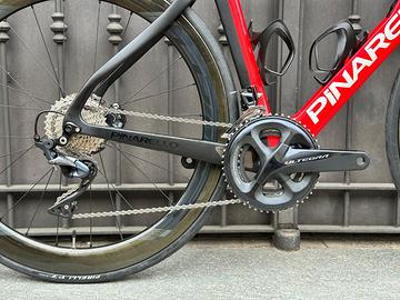 La Pinarello Prince FX è una bici da corsa ad alte prestazioni, progettata per offrire una guida reattiva e stabile, grazie alla sua geometria avanzata e al telaio in carbonio T900 di altissima qualità. Con la sua combinazione di innovazione e tradizione, rappresenta una scelta ideale per i ciclisti più esigenti.