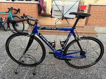 Vendo Pinarello Prince tg. 54 dei primi anni 2000. Telaio in alluminio e forcelle in carbonio, cambio campagnolo record 10v con leve in carbonio, guarnitura FSA 50-34 con pedivelle in carbonio. Tenuta bene sempre manutenzionata, presente solo qualche normale segno di usura dovuto all’utilizzo. Insieme vendo anche seconda coppia di ruote FSA.