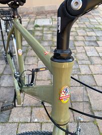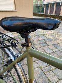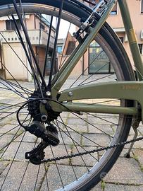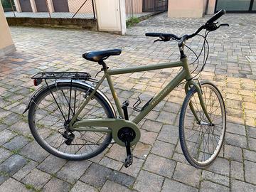 Bicicletta Pinarello Treviso city con ruote da 28, cambio Shimano, sella originale, portapacchi, portaborracce e cavalletto, la bici presenta qualche imperfezione estetica, il cambio posteriore va regolato, per il resto la bici non ha problemi.
