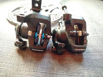 Vendo coppia pinze freno meccaniche anteriore e posteriore per freni a disco della Tektro modello MD-C510 comprese di pastiglie e disco freno Shimano SM-RT53 da 160mm. Il materiale è in buone condizioni ed era funzionante al momento dello smontaggio.