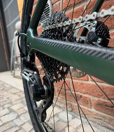 Scambio solo con BIANCHI ARCADEX. Vendo splendida gravel Piton Cross Carbon 3.0, misura 54, bici leggera, reattiva e confortevole, ideale sia per l'asfalto che per lo sterrato. Telaio in carbonio monoscocca ad alto modulo, colore verde opaco con dettagli arancioni, che garantisce rigidità e ottimo assorbimento delle vibrazioni. La geometria è studiata per offrire stabilità e controllo in fuoristrada, mantenendo al tempo stesso la giusta aggressività su strada. Montata con gruppo Shimano GRX specifico per il gravel, con guarnitura 1x e deragliatore posteriore a frizione che assicura cambiata fluida e precisa anche sui terreni più sconnessi. La trasmissione monocorona permette semplicità e affidabilità, con un ampio range di rapporti grazie alla cassetta posteriore ad 11 velocità. Ruote robuste con copertoni Vittoria Terreno Zero tubeless ready, perfetti per garantire scorrevolezza sull'asfalto e grip sicuro su sterrato compatto. Freni a disco idraulici Shimano, potenti e modulabili, per avere il massimo controllo in ogni condizione. #bici #gravel #corsa #mtb