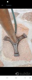 Bellissima pompa Antica ORIGINALE in Acciaio, con piede in ghisa marca ALFA- Milano, con la sua pattina gomma originale e perfettamente funzionante, Manico grande in legno da Museo. Spedizione Gratuita.