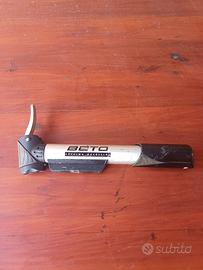 vendo pompa portatile beto in alluminio, con manometro integrato e doppia testa per valvole presta e schrader. leggera e pratica da portare in bici o nello zaino. usata ma in buone condizioni e perfettamente funzionante.