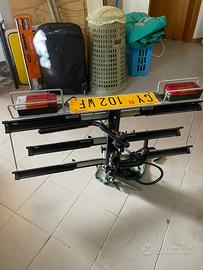 Vendo porta bici da gancio traino per inutilizzo. Prezzp. €150 Completo di fanali posteriori, impianto elettrico e targa ripetitrice. - Struttura robusta in metallo - Alloggiamento per 2 biciclette - Luci posteriori funzionanti con presa standard